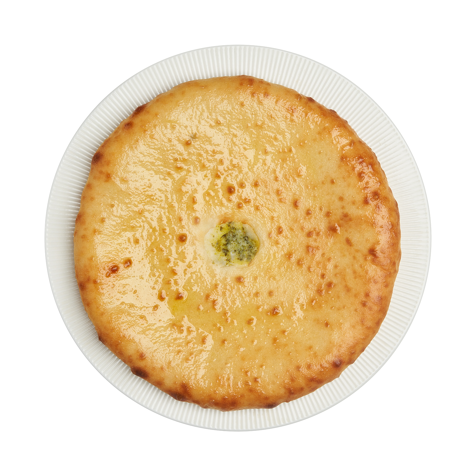 Мука пшеничная в/с, сыр осетинский (молоко цельное, молокосвертывающий фермент жи- вотного происхождения, соль), шпинат свежеза- мороженный, укроп свежезамороженный, соль, вода, масло растительное, дрожжи сухие